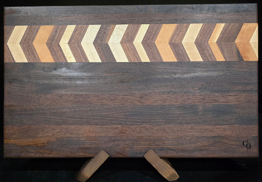 Cherry, Maple, & Walnut Edge Grain Cutting Board with Chevron Design