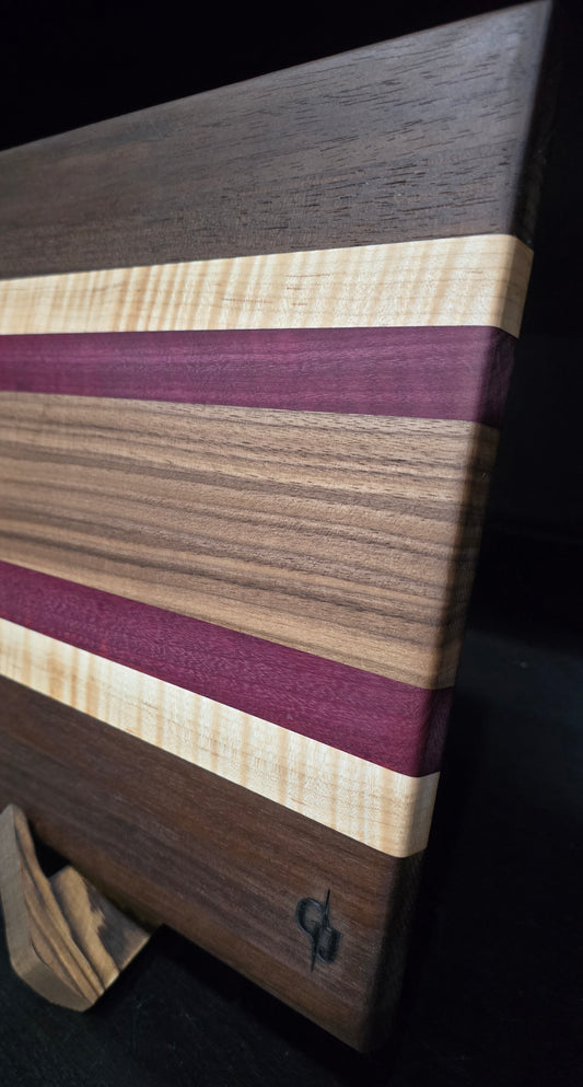 Walnut, Curly Maple, Purple Heart Edge Grain Cutting Board