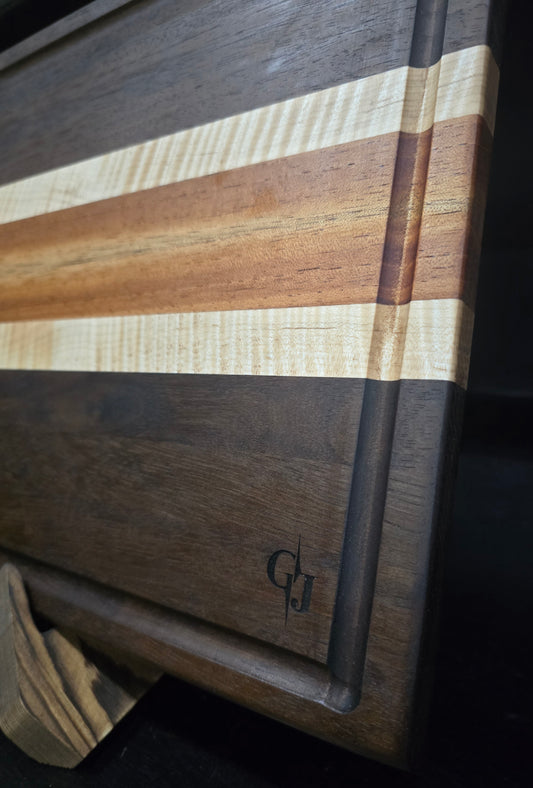 Walnut Edge Grain Cutting Board with Mahogany and Maple Stripe with Juice Groove