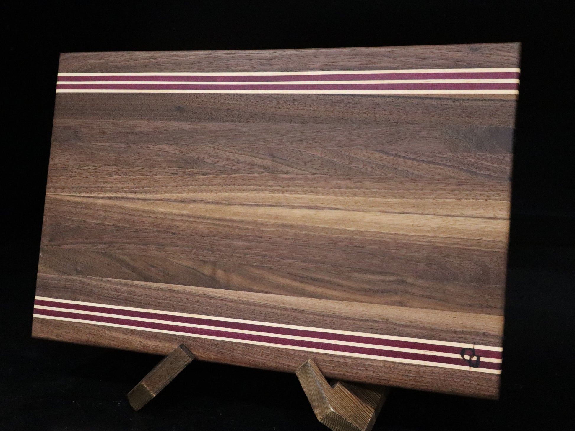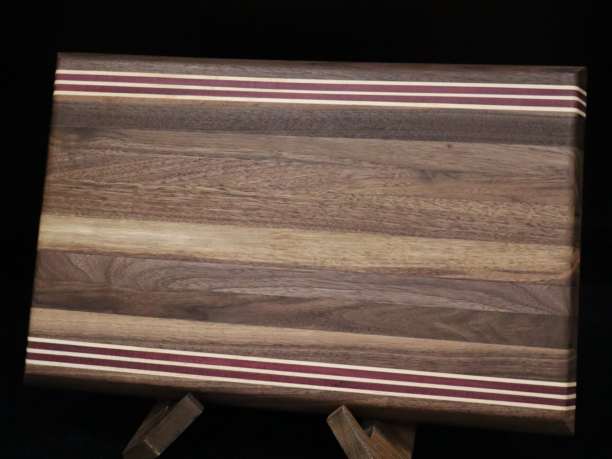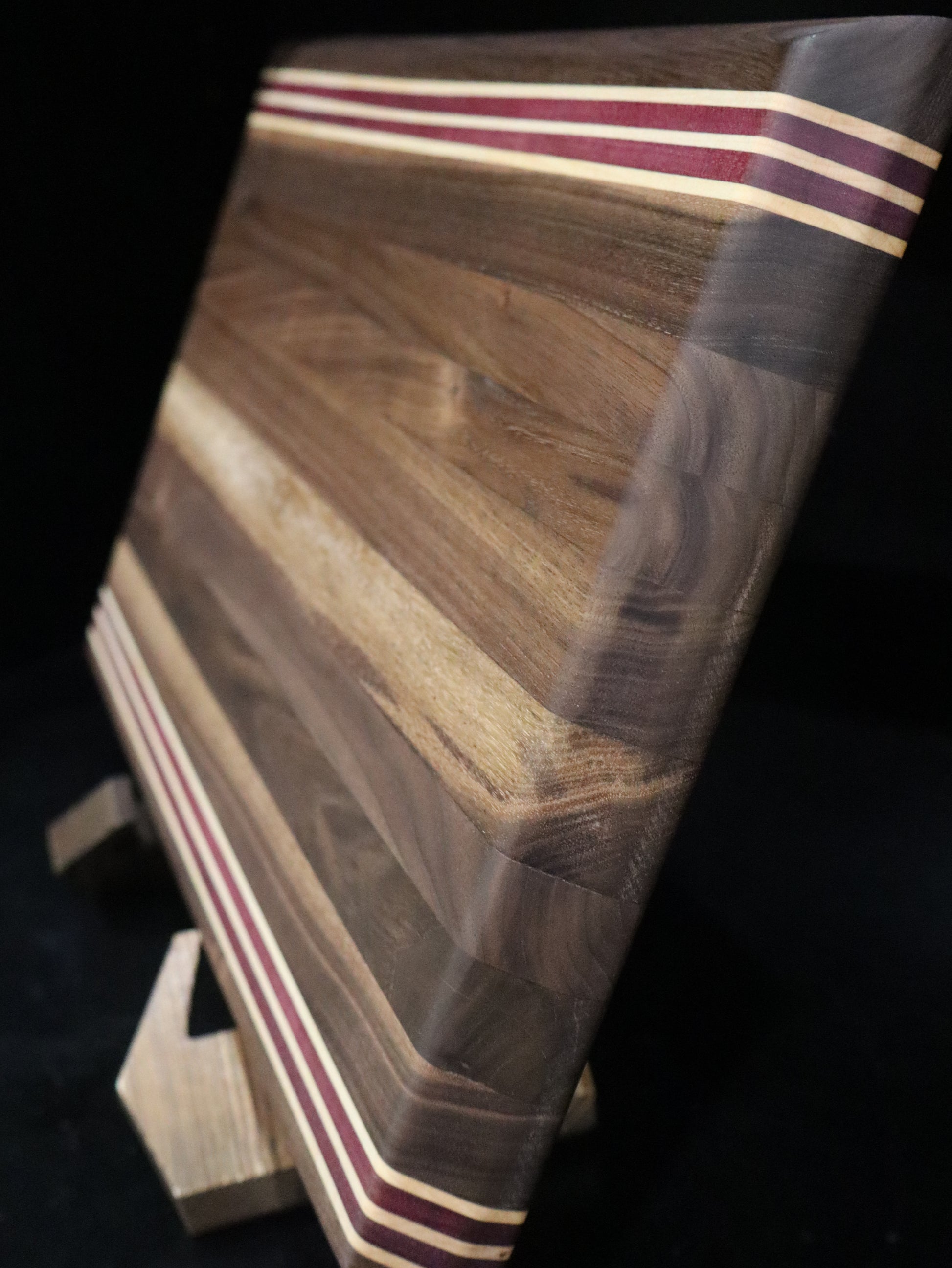 Walnut Edge Grain Cutting Board with Purple Heart and Maple Stripe